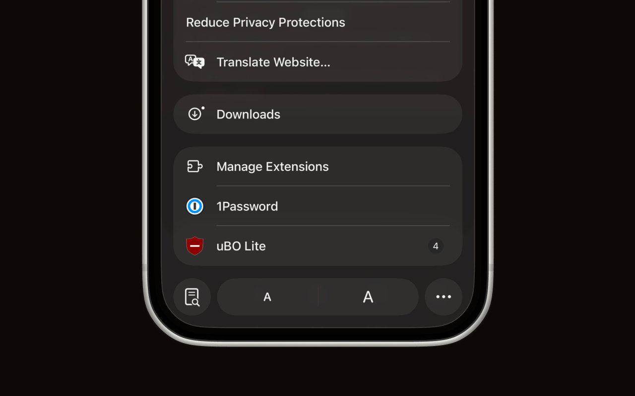 After the download finishes, you need to open it. Tap the Aa menu button (or ... menu) in Safari's address bar. Pictured below, the downloads icon is on the left side of the address bar.