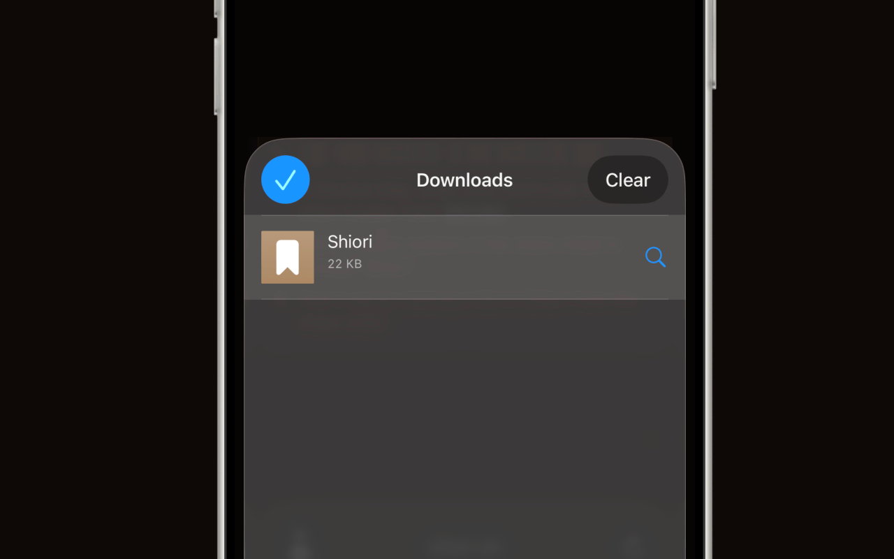 Tap Downloads from the menu. You'll see the Shiori shortcut file listed.