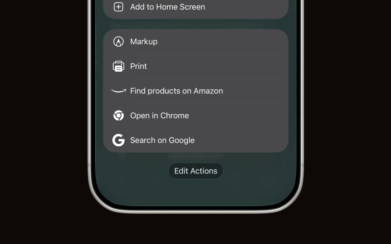 Now let's add Shiori to your share sheet for quick access. Open any page in Safari or another app, tap the Share button, then scroll down to the bottom and tap Edit Actions.